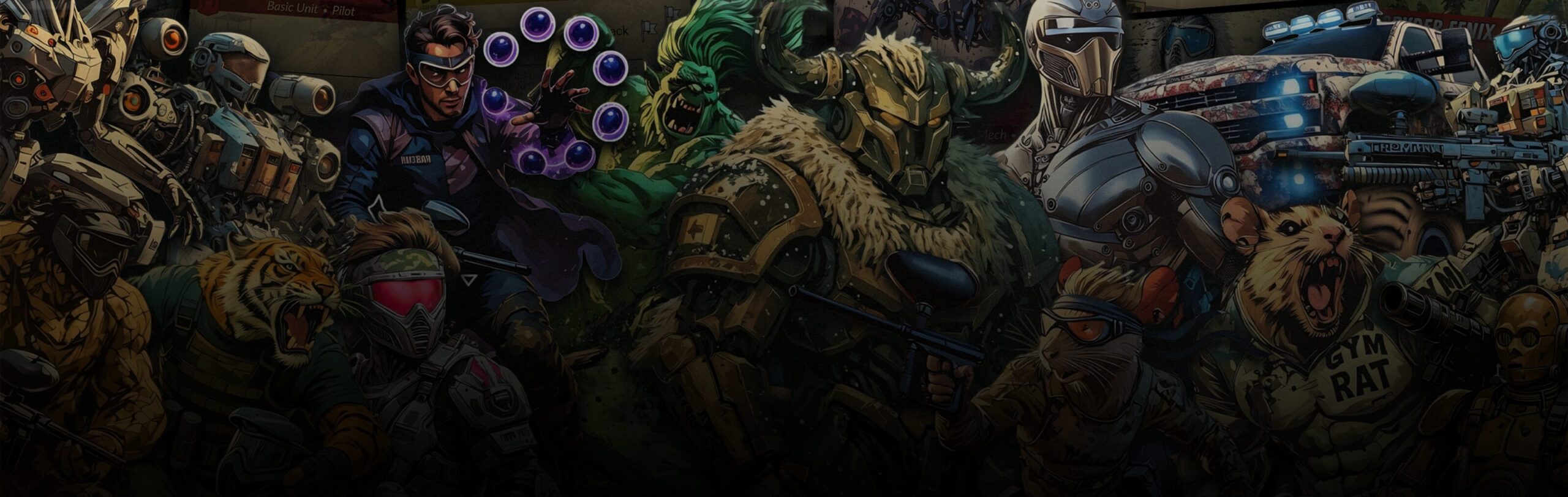 Step into a world where paintball has gone beyond the field and into the fantastic. Tigers take the field beside pros in mech suits, drones drop paint-powered airstrikes, and classic markers face off against experimental tech. It’s tactical, fast, and a little ridiculous. Build your deck, command the chaos, and carve your legend in the ultimate tabletop royale.
